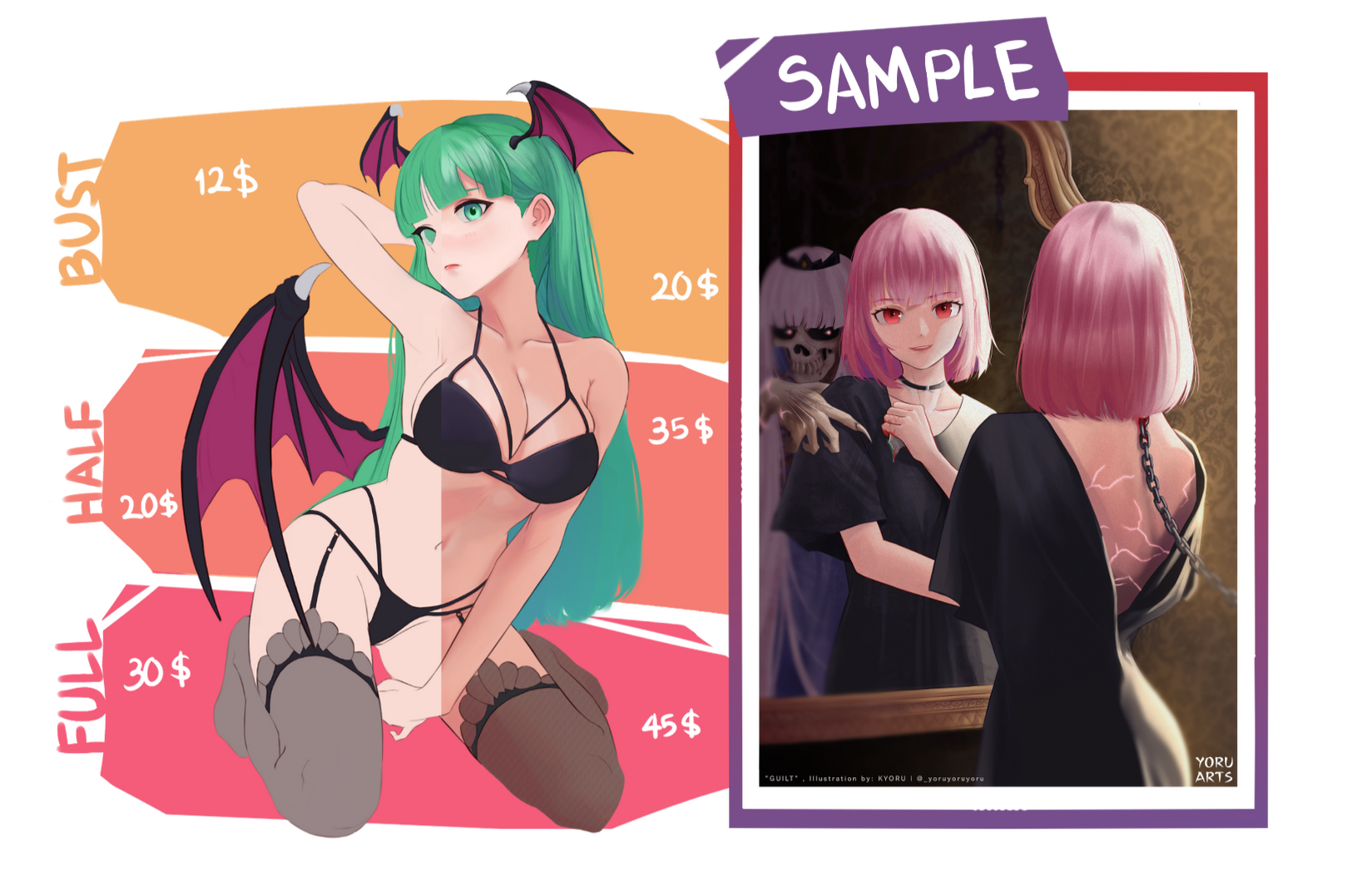 | Half Body | $20 | $35 | Add $10 |